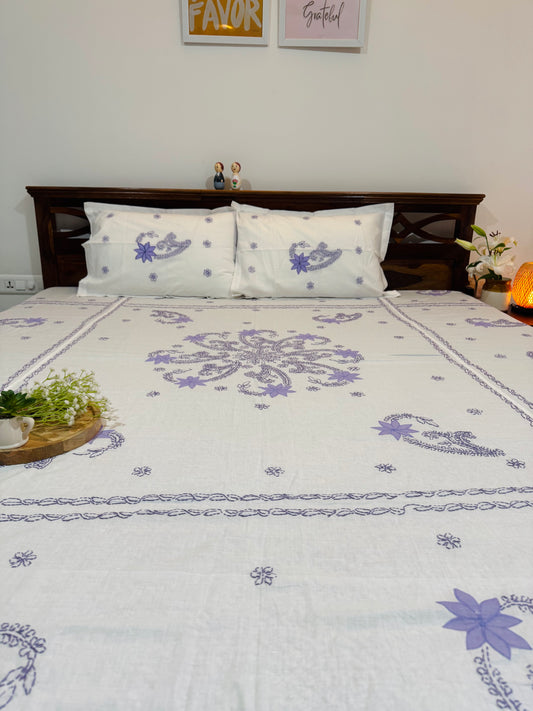 Dua - King Size Chikankari Bedsheet 100% Mulmul Cotton