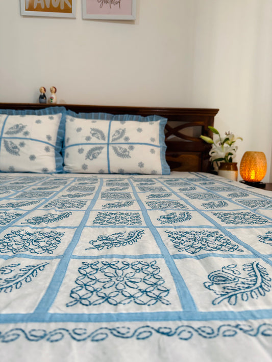 Dua - King Size Chikankari Bedsheet 100% Mulmul Cotton