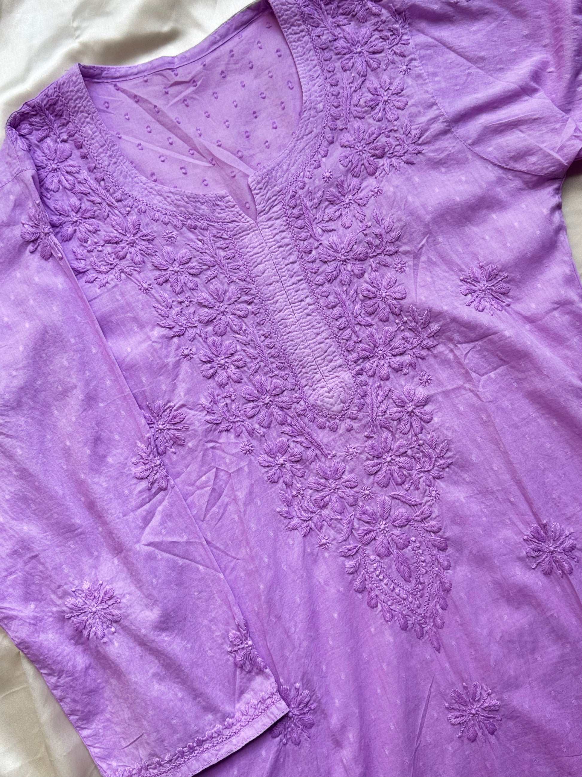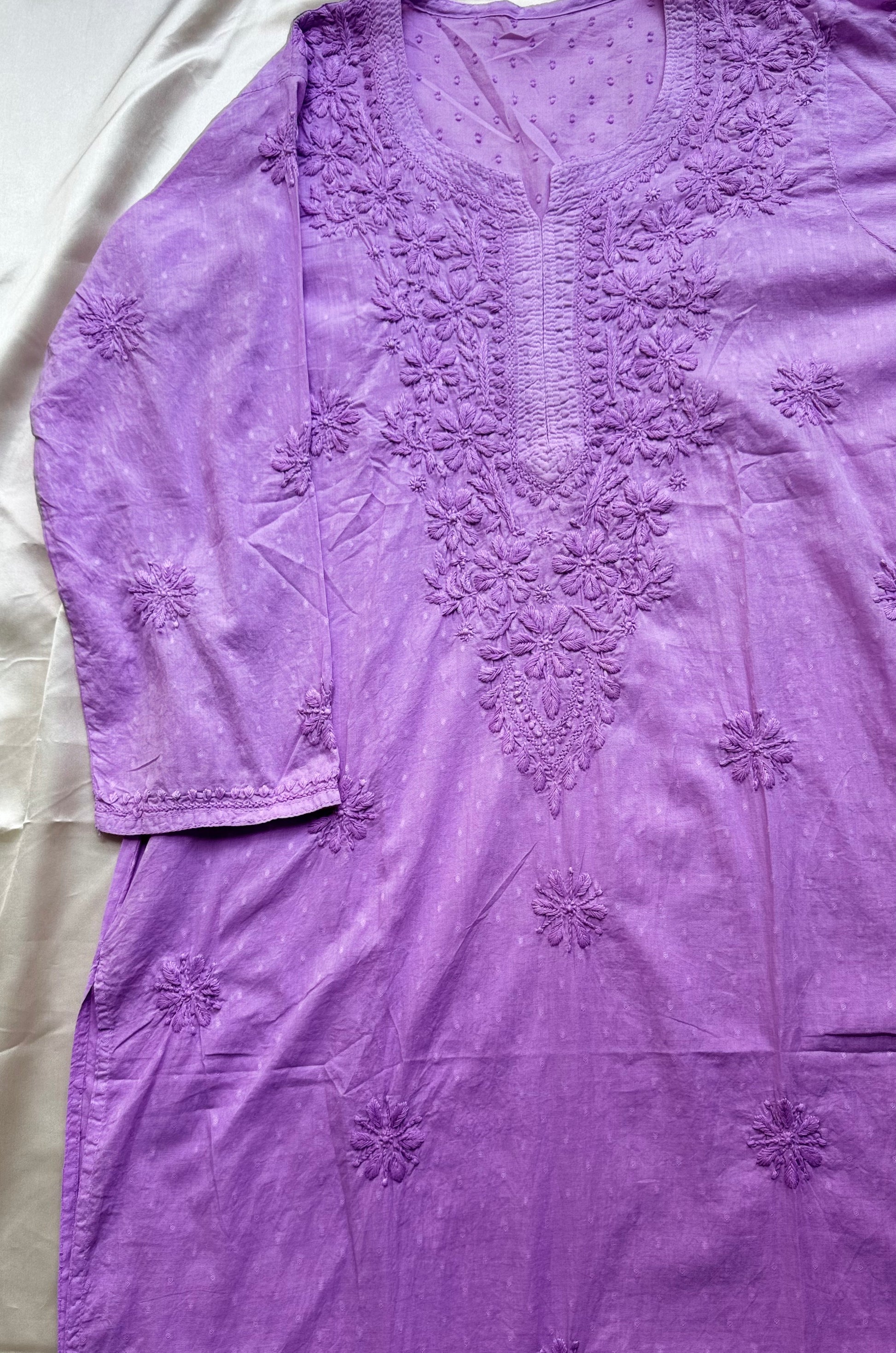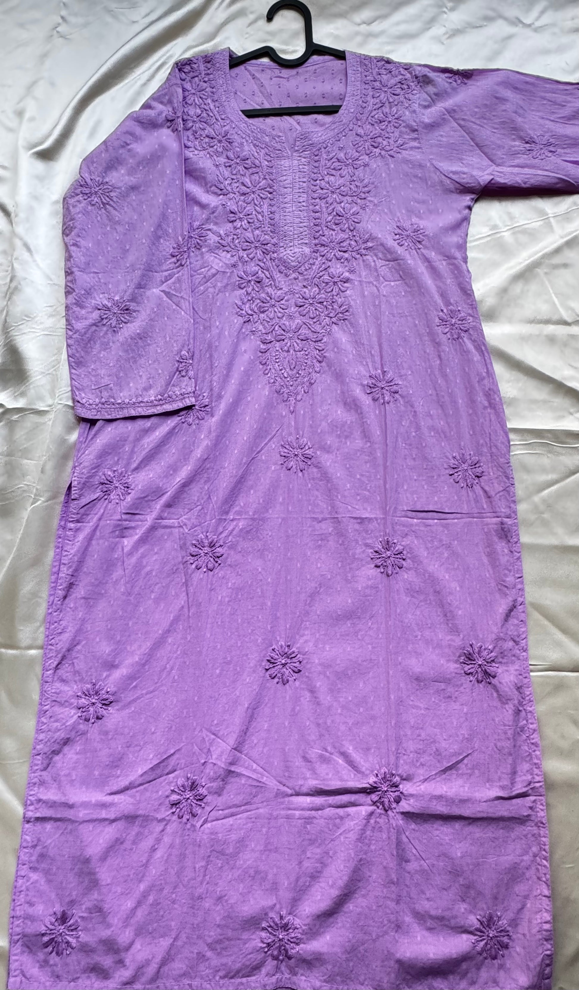 This comfortable soft dobi cotton kurta features exquisite chikankari work with matching color embroidery for a subtle yet elegant look. Designed in a flattering straight cut, Perfectly versatile, it pairs effortlessly with your favorite palazzo, regular pants, or even denim. Whether you're dressing up for a casual outing or a semi-formal event, this kurta is your go-to choice for any occasion.