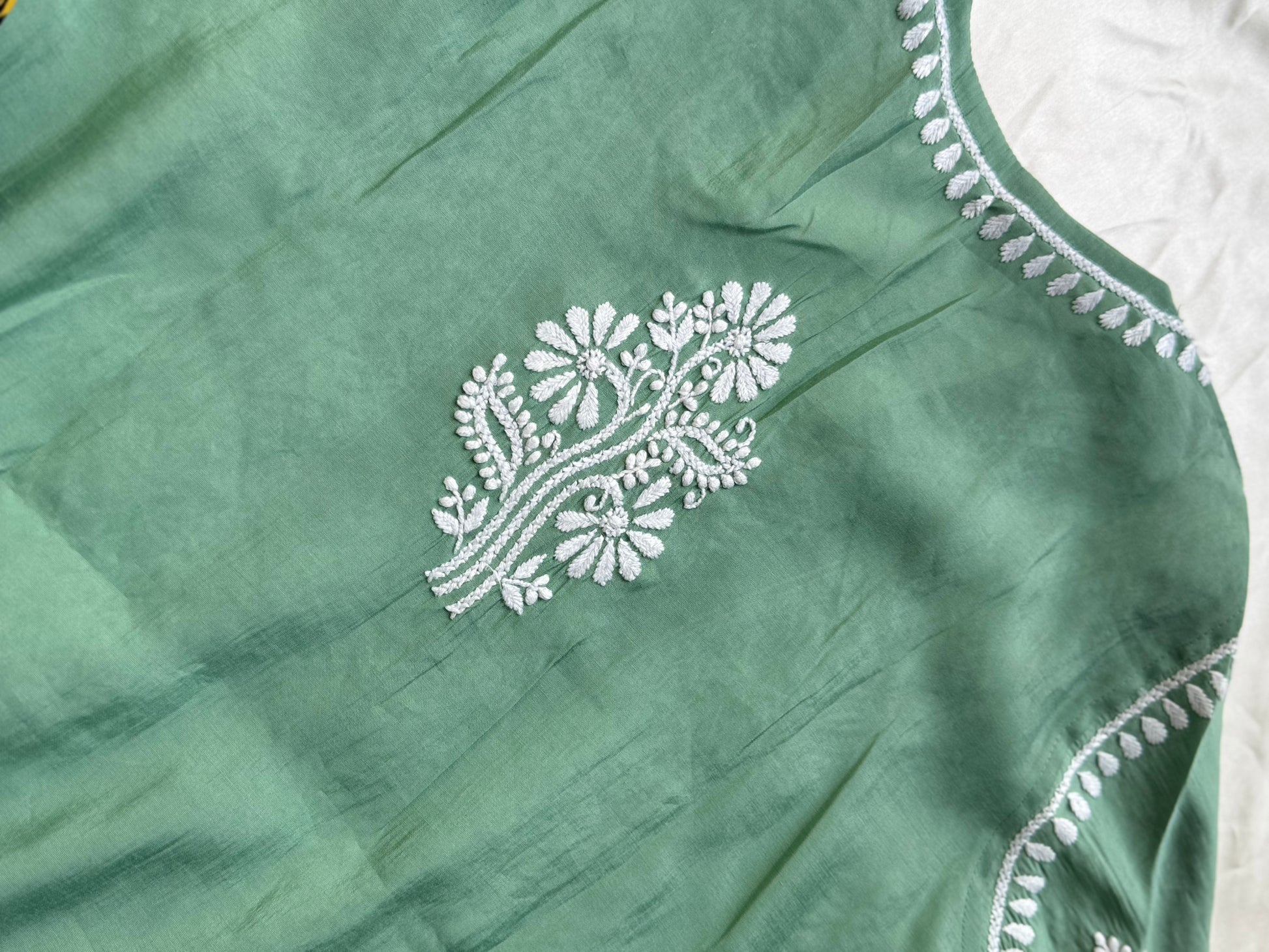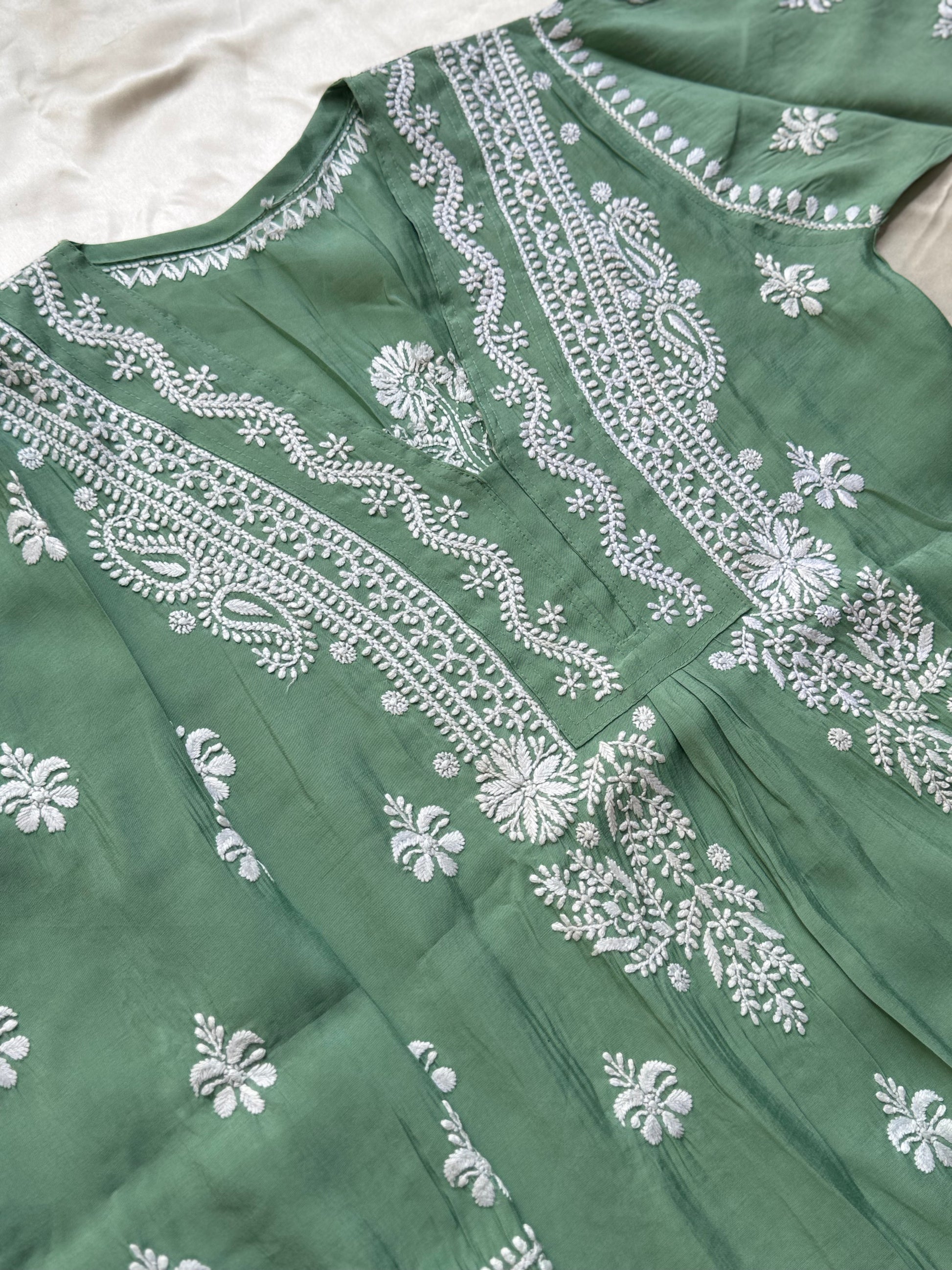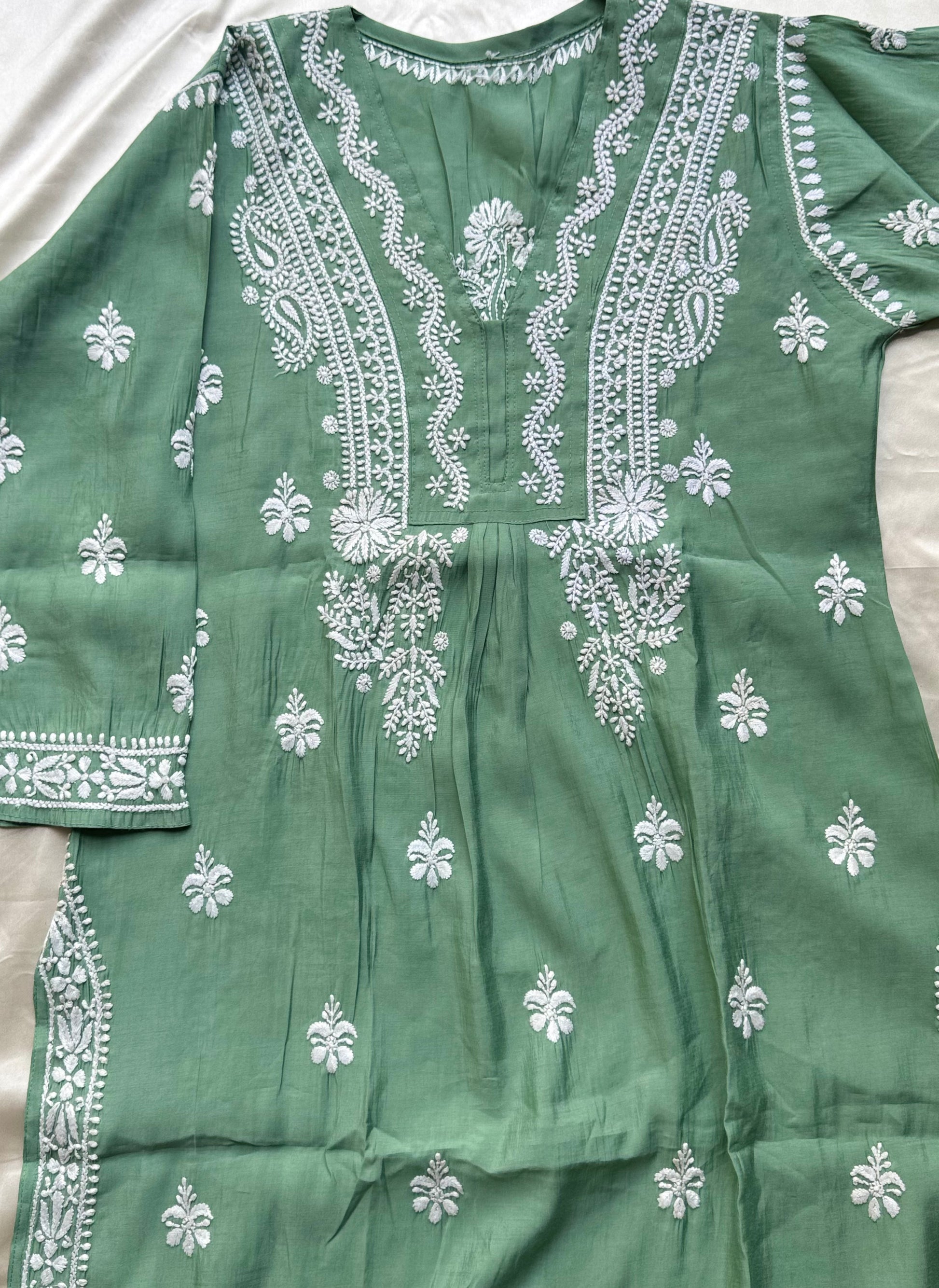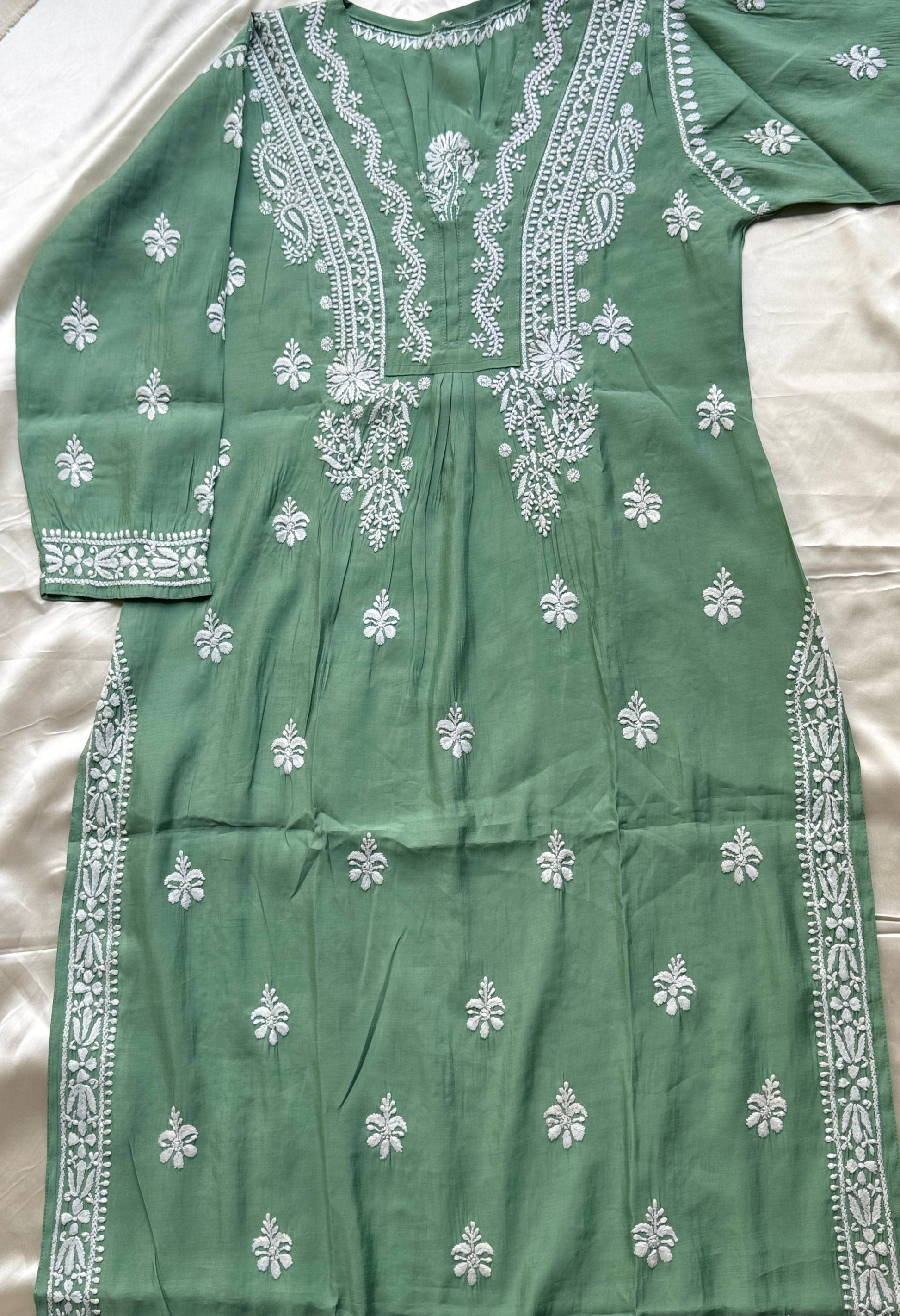 Crafted from high-quality Chanderi Cotton, this kurta provides a comfortable and relaxed fit while exuding luxury. The delicate heavy chikankari work adds a timeless, handcrafted element, making it ideal for casuals and festive occassions.