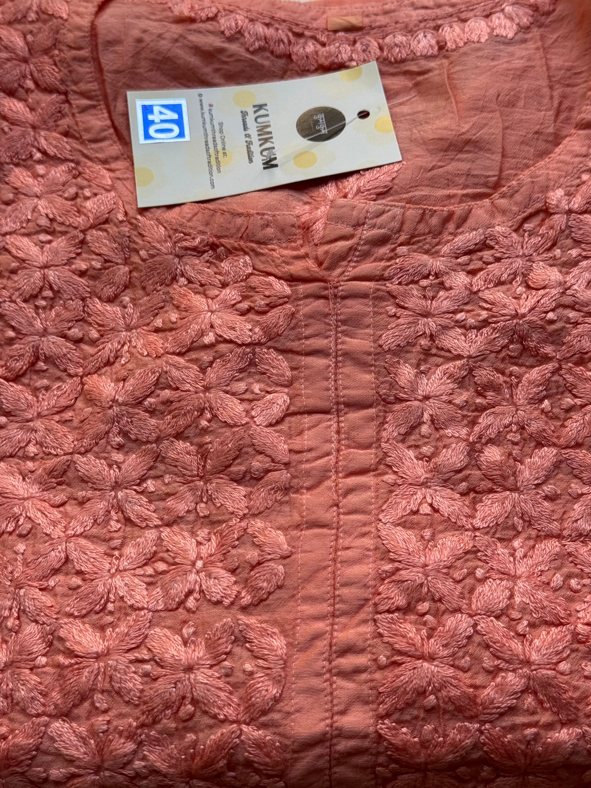 RAESHA Chanderi Cotton Kurti - Dark Peach