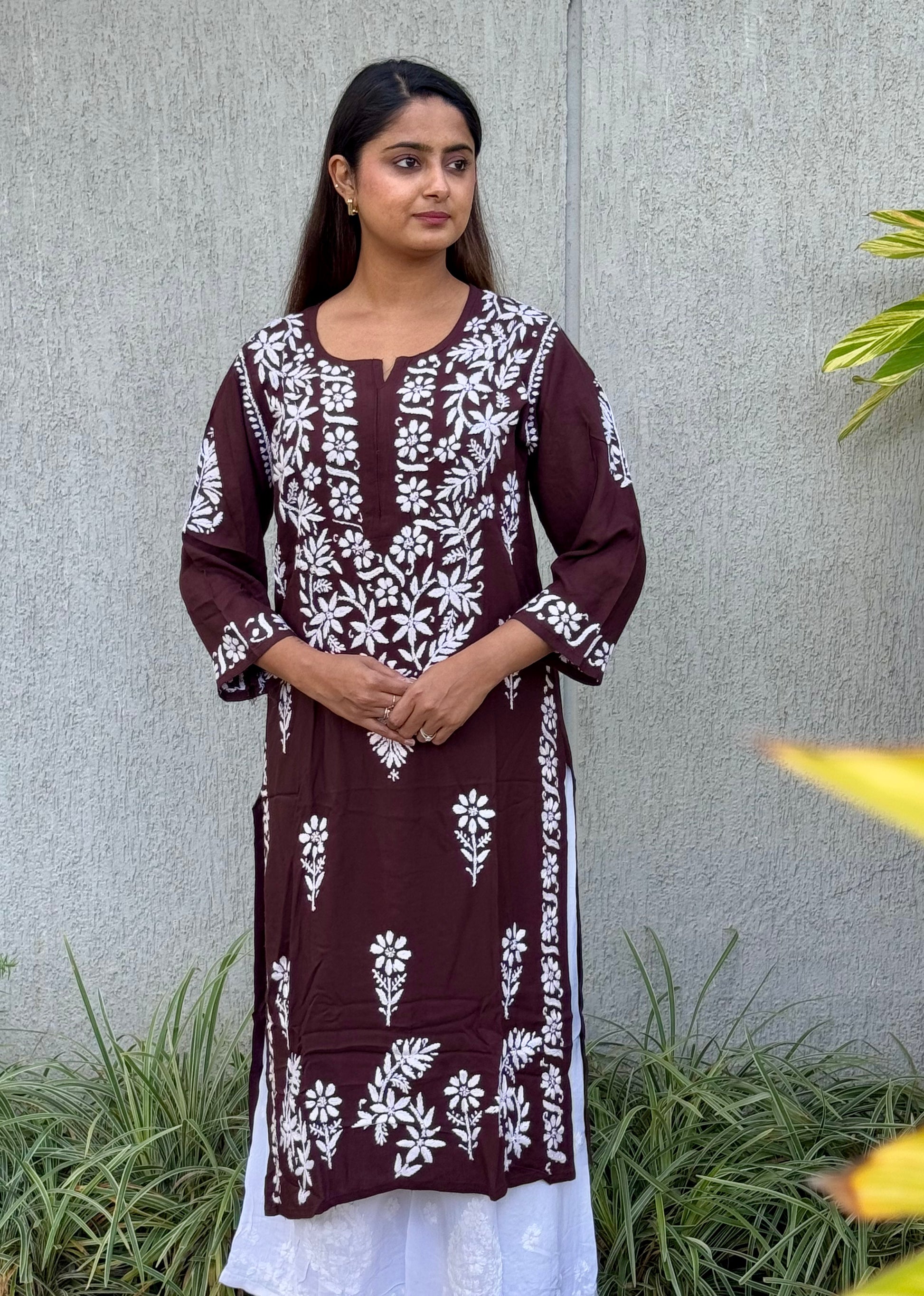 This Modal Chikankari Kurta combines comfort and elegance with its soft, breathable fabric and intricate chikankari embroidery. The delicate floral patterns add a touch of sophistication, making it perfect for both casual and semi-formal occasions. Pair it with palazzos, pants, or denim for a chic, versatile look.