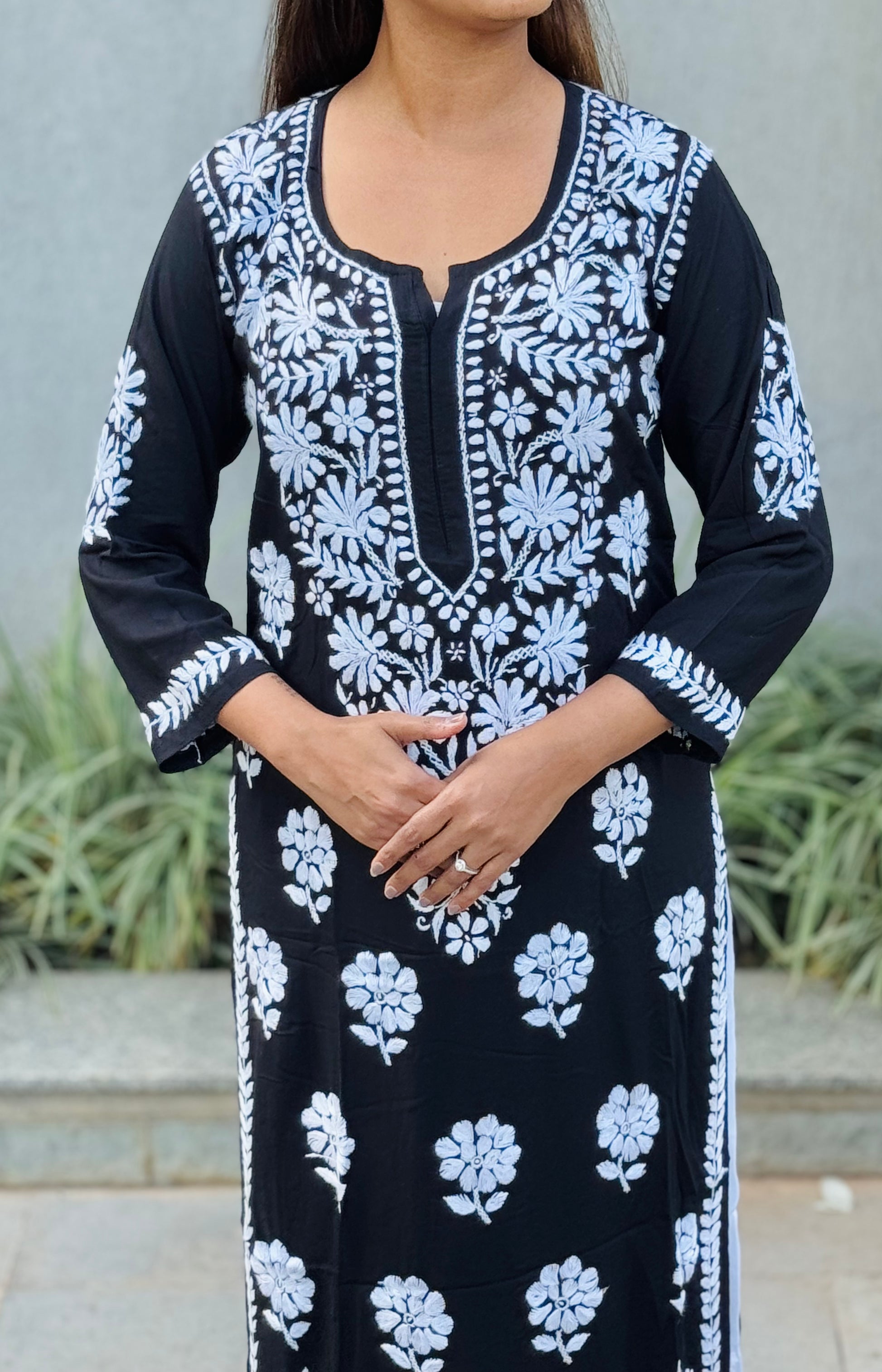 This Modal Chikankari Kurta combines comfort and elegance with its soft, breathable fabric and intricate chikankari embroidery. The delicate floral patterns add a touch of sophistication, making it perfect for both casual and semi-formal occasions. Pair it with palazzos, pants, or denim for a chic, versatile look.