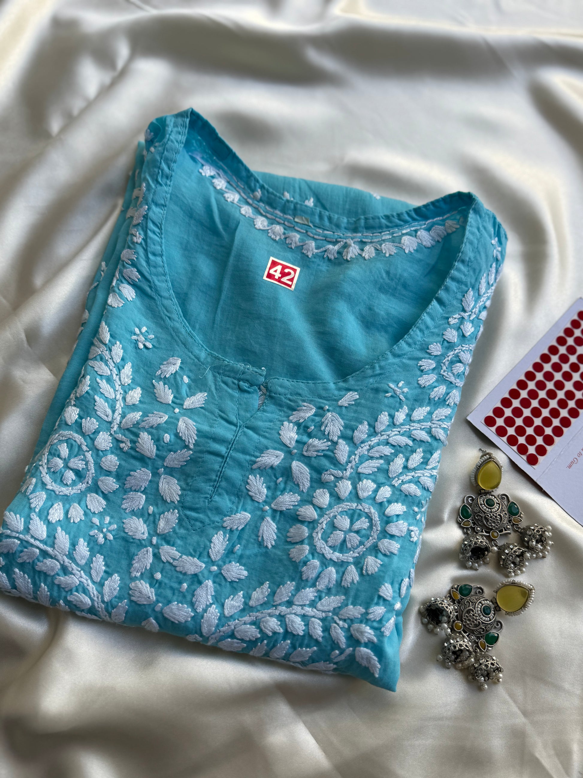 This Modal Short Chikankari Kurta combines comfort and elegance with its soft, breathable fabric and intricate chikankari embroidery. The delicate floral patterns add a touch of sophistication, making it perfect for both casual and semi-formal occasions. Pair it with palazzos, pants, or denim for a chic, versatile look.