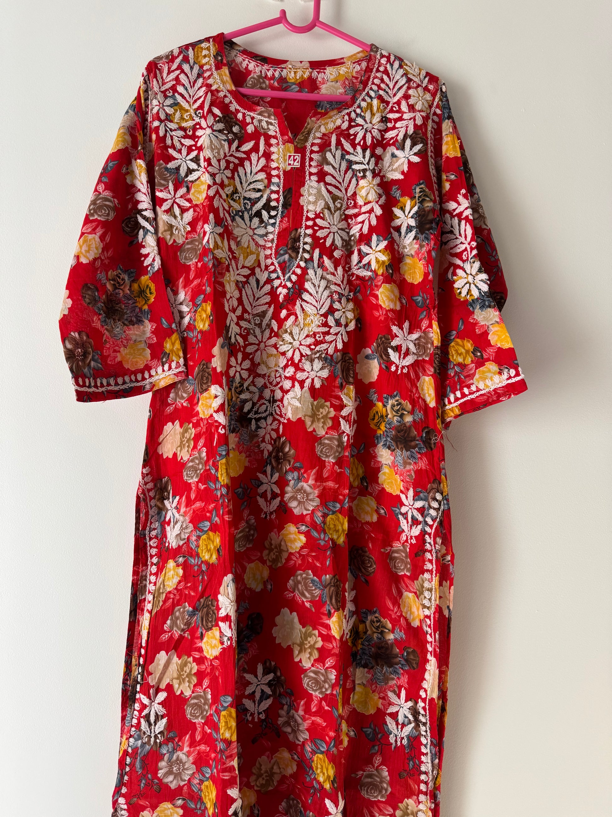 These soft mulmul chikankari kurtis, adorned with a delicate floral pattern, are a masterpiece of intricate craftsmanship. The fine chikankari work adds an elegant touch, making them effortlessly versatile. Pair them with your go-to white palazzo, classic pants, or even your favorite denim for a chic, stylish look. Whether you're heading to a casual gathering or a semi-formal affair, these kurtis are the perfect choice to elevate your style for any occasion.