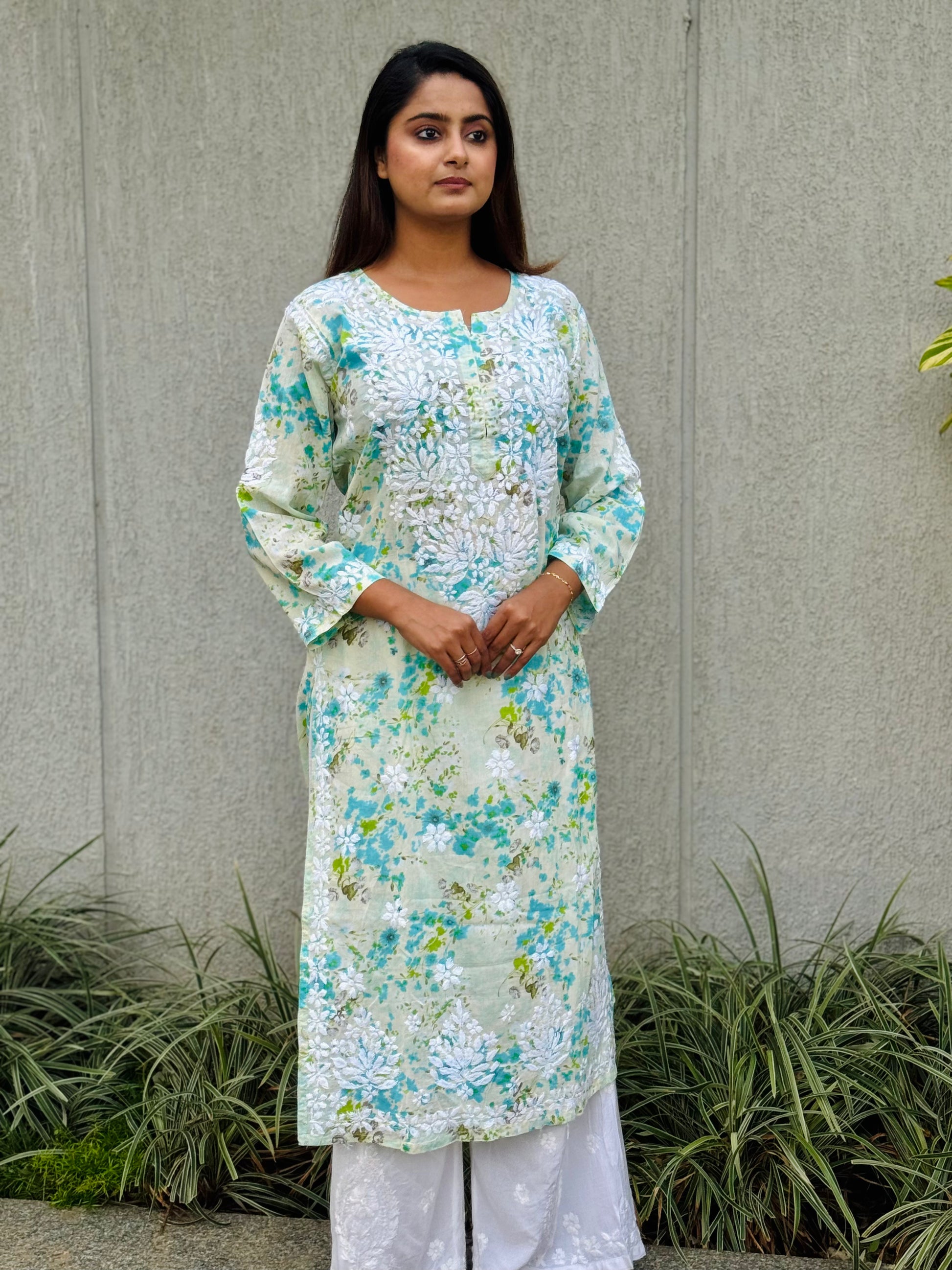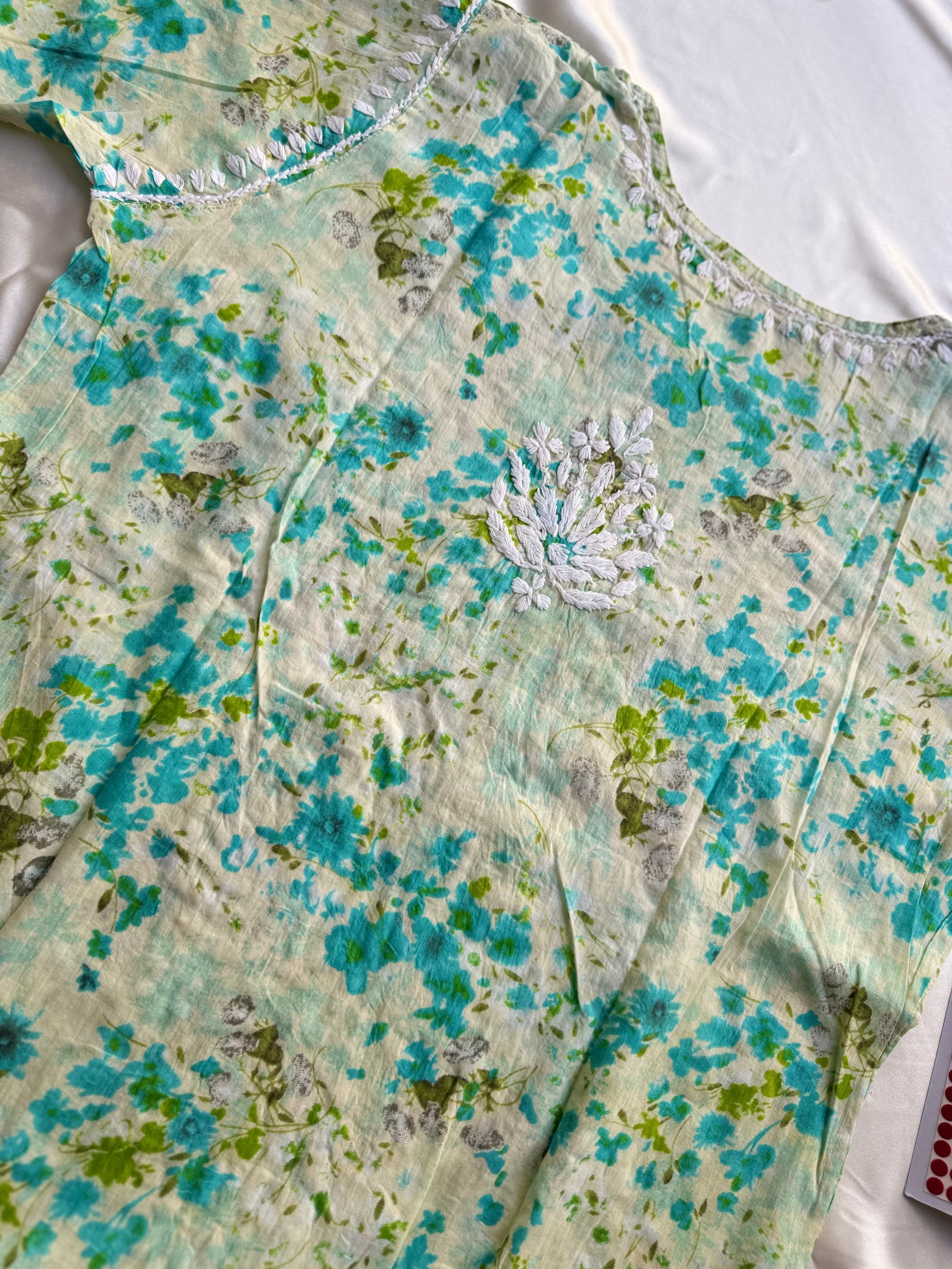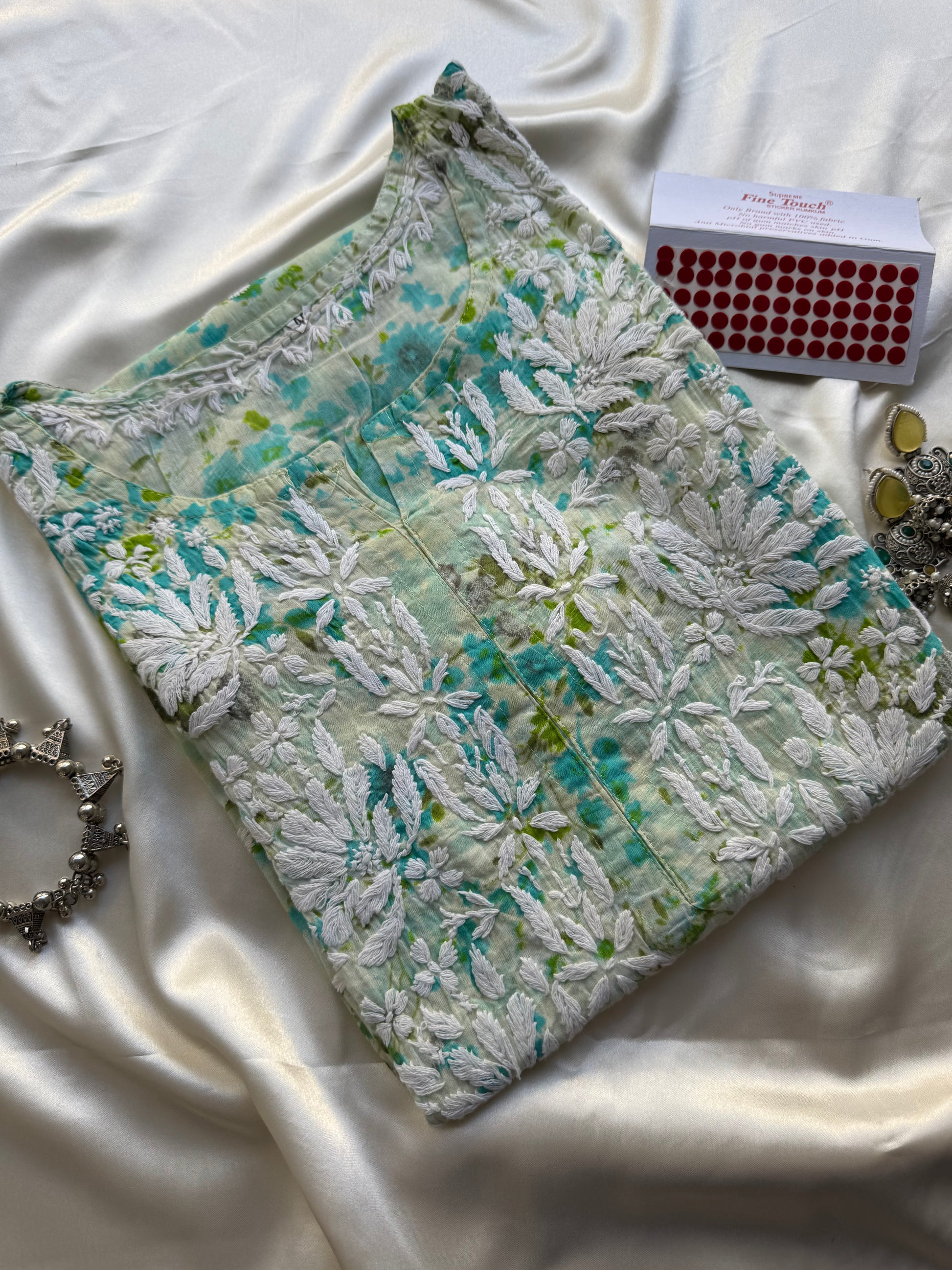 These soft mulmul chikankari kurtis, adorned with a delicate floral pattern, are a masterpiece of intricate craftsmanship. The fine chikankari work adds an elegant touch, making them effortlessly versatile. Pair them with your go-to white palazzo, classic pants, or even your favorite denim for a chic, stylish look. Whether you're heading to a casual gathering or a semi-formal affair, these kurtis are the perfect choice to elevate your style for any occasion.